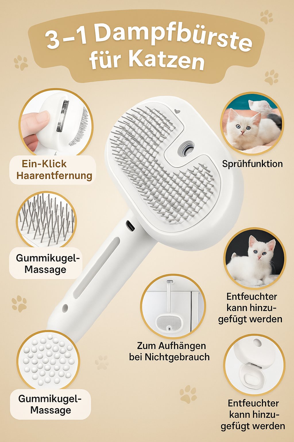 Mit dieser Bürste entfernen Sie Tierhaare sanft und gründlich. Das Fell bleibt gepflegt, und Ihr Zuhause sauber. Lose Haare lassen sich mit nur einem Knopfdruck entfernen. Einfach, praktisch und schonend.